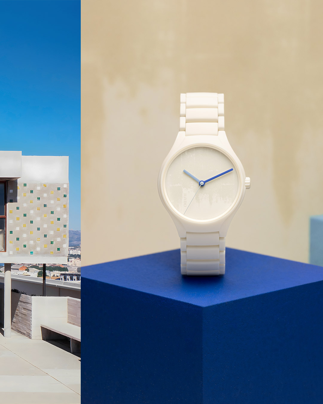 True Round x Les Couleurs Le Corbusier "La Cité Radieuse"Een uniek horloge dat een eerbetoon is aan La Cité Radieuse, een enorm betonnen appartementencomplex in Marseille, Frankrijk, dat een nieuwe invulling gaf aan modern stadsleven. Het horloge is uitgevoerd in een unieke ivoorwitte keramische kast en vertelt een verhaal van pure, minimalistische elegantie.